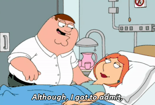Although, I got to admit, I'm gonna miss eating cereal out of the dimples on your ass. Well, Mrs. Griffin, you rest up for a few days and you'll be just fine.