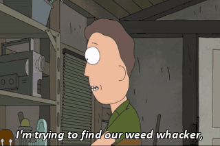 I'm trying to find our weed whacker, 'cause our weeds are wack, yo.