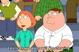 Lois, can we go now? I'm starving. The game's almost over, Peter. Try to think about something else.