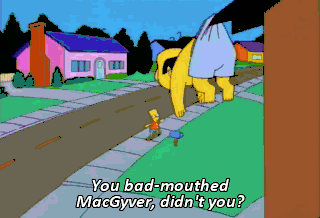 You bad-mouthed MacGyver, didn't you? Ma-- Uh-- Ma-- Huh? What you doin', Marge? Making out the jury list for the film festival. Mayor Quimby, Krusty, jay. Marge, do you respect my intelligence?