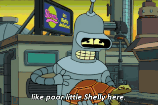 like poor little Shelly here. What could you possibly have in common with this walkin' soup mix? For one thing, we both have a tough outer shell... but lead a rich inner life. And also-- Well, you know.