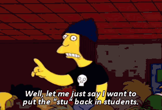 Well, let me just say I want to put the "stu" back in students. It's just a damn popularity contest with you kids. Now look what you've done, you little freaks!