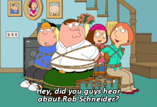 Hey, did you guys hear about Rob Schneider? Somebody told me he goes down to Home Depot and pays the migrant workers to go to his house and choke him while he masturbates in the shower.
