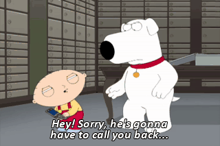 Hey! Sorry, he's gonna have to call you back... It's dead. You wasted the one phone call we had to return a sweater?