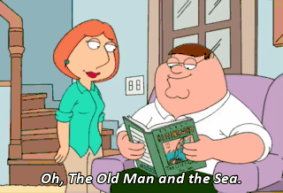 Oh, The Old Man and the Sea. I see you're getting in the mood for our cruise. Yeah. Stupid fisherman. Sitting out there in a boat yammering to himself. He doesn't even know I'm watching him.