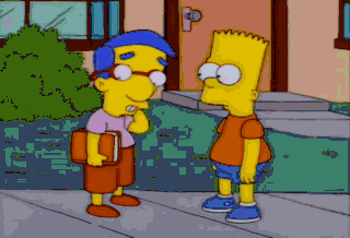 Hey, look! Milhouse has an earring! Milhouse! Milhouse! Milhouse! Hey, if you want cool, check this out. Everybody if you can do the bartman Shake your body turn it out if you cancan