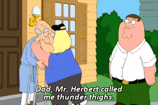 Dad, Mr. Herbert called me thunder thighs. Oh, you did it. Thank you!