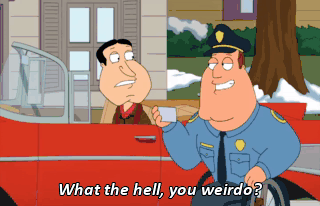 What the hell, you weirdo? (LAUGHS) I'm just having fun.
