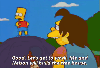 Good. Let's get to work. Me and Nelson will build the tree house.