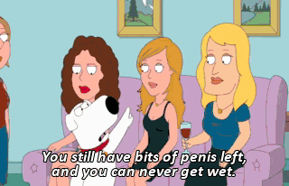 You still have bits of penis left, and you can never get wet. (SIGHS) And you, you're more of a woman than anyone else in this room! (LIQUID SWISHING) Get him! (ALL CLAMORING) (DOG BARKING)