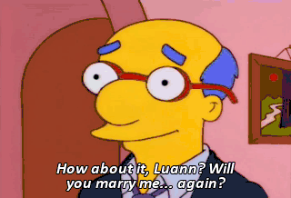 How about it, Luann? Will you marry me... again? Ooh, no! Oh. Well, uh, can I have my shirts back at least?