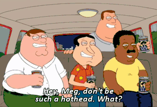 Hey, Meg, don't be such a hothead. What? Hey, Meg, you sure look hot today. What? Hey, Meg, I lit your scalp on fire. (SCREAMING) Don't worry, I'll put it out.