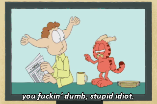 you fuckin' dumb, stupid idiot. Come on, Gazorpazorptield, Go easy on me, huh?