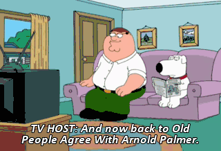 TV HOST: And now back to Old People Agree With Arnold Palmer. Tomato soup, grilled cheese, and a weak cup of tea... is the best lunch in my book.