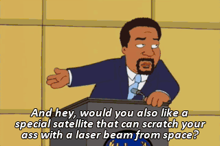 And hey, would you also like a special satellite that can scratch your ass with a laser beam from space? They have those?