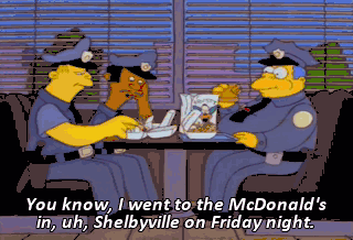 You know, I went to the McDonald's in, uh, Shelbyville on Friday night.