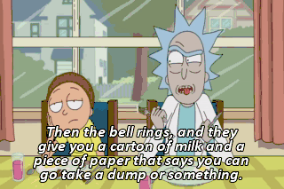 Then the bell rings, and they give you a carton of milk and a piece of paper that says you can go take a dump or something.