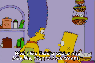 Well, I like T-shirts with a nice joke like, "Support our troops."
