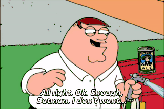 All right. Ok. Enough, Batman. I don't want... Not so mighty now, are you, Catwoman? Peter! Ahh! Take that! Take that! I spit water on you. Oh. Peter! Pe-- Batman, I can't breathe! Peter! Ahh!