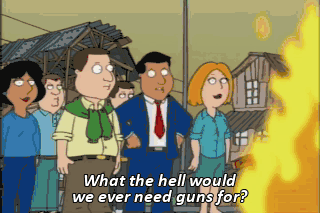 What the hell would we ever need guns for? Victory is ours. Quick! Grab the guns! They're our only hope! Ahh!