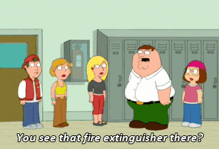 You see that fire extinguisher there?