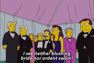 I see neither blushing bride nor ardent swain!