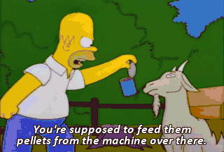 You're supposed to feed them pellets from the machine over there. Huh? Oh, my!