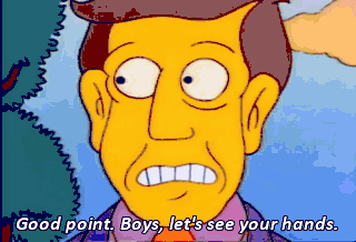 Good point. Boys, let's see your hands. Mm-hmm. Good. Okay. Simpson ?