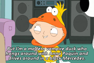 But I'm a modern vampire duck who hangs around with Anna Paquin and drives around in a black Mercedes. What is that? It's True Blood.