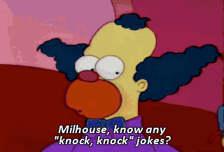 Milhouse, know any "knock, knock" jokes? I want to go home. Homer, maybe you better take Milhouse home. Gladly. Wow! The Concert for Bangladesh.