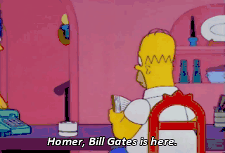 Homer, Bill Gates is here. Bill Gates? Billionaire computer nerd Bill Gates? Oh, my God. Oh, my God. Get out of sight, Marge. I don't want this to look like a two-bit operation. Mr. Simpson?