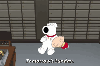 Tomorrow's Sunday. Fuck. (SNORING)