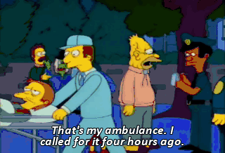 That's my ambulance. I called for it four hours ago.