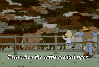 Then when the cattle are just right-- Mmm! it's time for them to "graduate" from Bovine University.