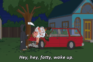 Hey, hey, fatty, wake up. What the... What happened? You're dead, jackass. You died in a drunk-driving accident. Oh, God. Did I hold on to the touchdown pass? What the... What's wrong with you?