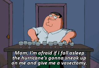 Mom, I'm afraid if I fall asleep the hurricane's gonna sneak up on me and give me a vasectomy.