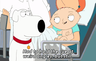 Had to hold the cue at weird angles, but still. Oh, Peter, isn't he amazing? Is he smart, or is he like me? He's perfect.