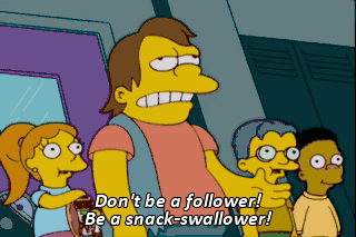 Don't be a follower! Be a snack-swallower! It's fun to obey the machine.
