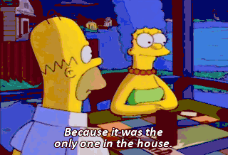 Because it was the only one in the house. Come on, Homer. Open the door for your mystery date. Ooh! Captain of the football team. He's a dreamboat. Don't wait up, Marge. Okay, Bart. Your turn, your turn.