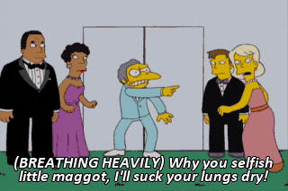 (BREATHING HEAVILY) Why you selfish little maggot, I'll suck your lungs dry! Knock it off! (ALL BREATHING HEAVILY) MAN: Okay...