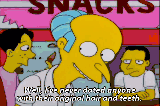 Well, I've never dated anyone with their original hair and teeth. You're a nice guy, Monty. You're always laughing and tenting your fingers. I like that. Excellent. And you're so upbeat.