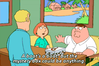 A boat's a boat. But the mystery box could be anything. It could even be a boat. You know how much we've wanted one of those. Then let's just-- We'll take the box.