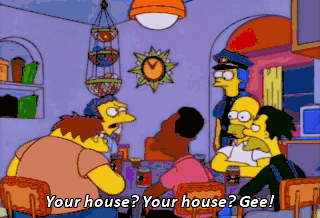 Your house? Your house? Gee! It's so glamorously decorated, I thought I was in Vegas. Hey, you guys lied to me! You said it was Vegas. Yeah, we'll be going. We'll just be going.