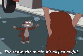 The show, the music, it's all just awful. (GROWLING) (SCREAMING) Dad, we gotta help him! Do something! What am I supposed to do? You're my dad! Think of something!