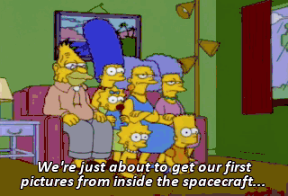 We're just about to get our first pictures from inside the spacecraft... with "averagenaut" Homer Simpson. And we'd like to-- Ladies and gentlemen, we've just lost the picture,