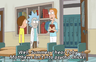 Well, Summer, I hear Toby Matthews isn't into psycho chicks. Can't think of anyone that is. I'll see you motherfuckers at the dance! Tiny Rick!