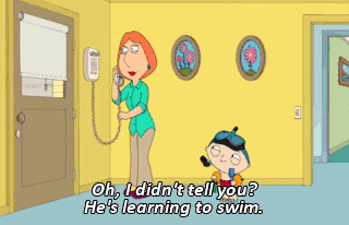 Oh, I didn't tell you? He's learning to swim.