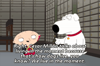 Right, Cesar Millan talks about living in the moment because that's how dogs live, you know? We live in the moment.