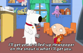 I'll get you a rolled-up newspaper on the snout is what I'll get you. Very bad dog.