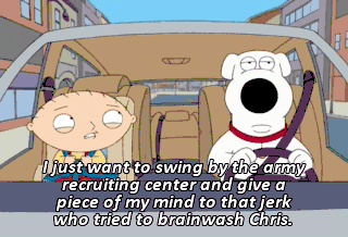 I just want to swing by the army recruiting center and give a piece of my mind to that jerk who tried to brainwash Chris.